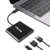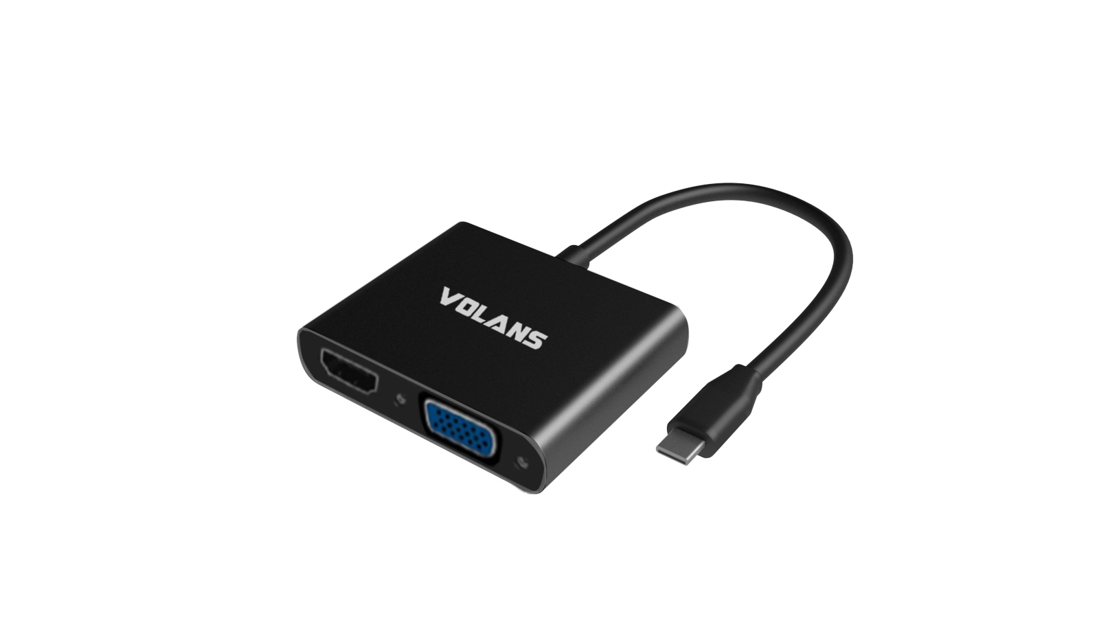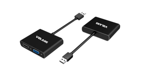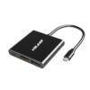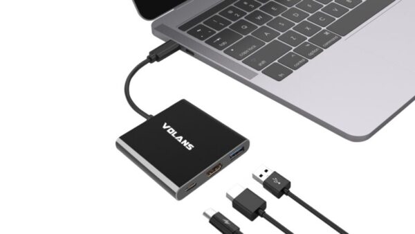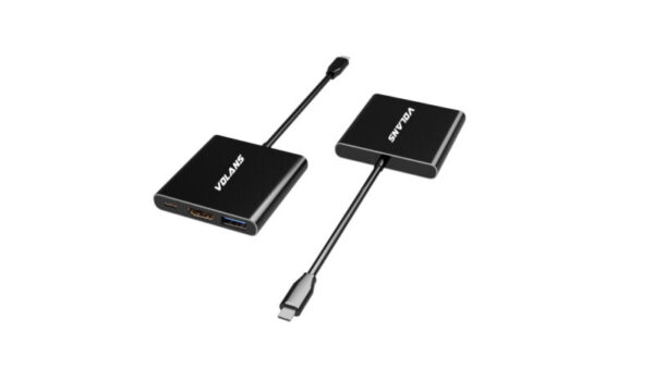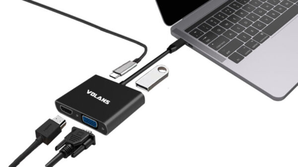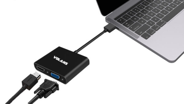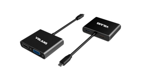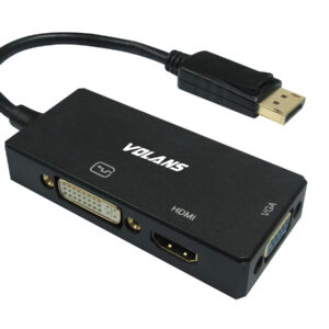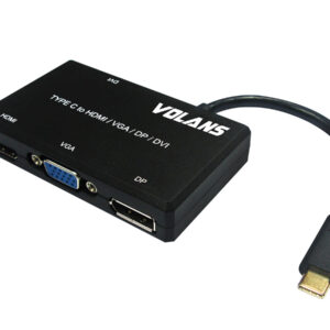 The Volans USB-C to HDMI / DVI / VGA / DP adapter is an innovative 4-in-1 solution for connecting a USB-C enabled source such as a Laptop or MacBook to a HDMI, DVI, VGA or DP enabled display. Multiple outputs from the adapter ensures compatibility with almost any Projector, Monitor or Display for travel, or BYOD (Bring Your Own Device) applications at the office. The adapter is compatible with most of the USB-C enabled computers with support for USB-C Display Alt. mode and Thunderbolt 3 ports. The Plug-and-Play adapter has a small foot print and lightweight design perfect for travel, or BYOD (Bring Your Own Device) applications at the office.