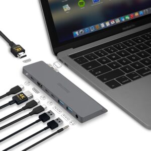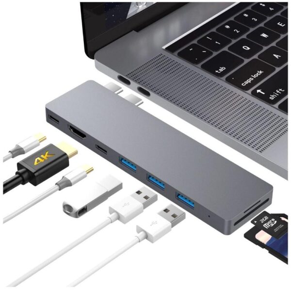 Intact 9820T 8 in 1 Dual USB-C Adapter for MacBook/Pro HDMI/ Thunderbolt3/USB3.0*3/TypeC/SD/TF