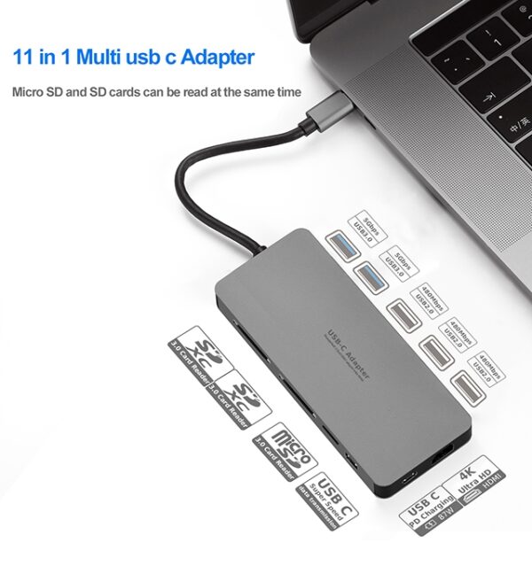 Intact 9845T 11 in 1 USB-C Adapter HDMI/USB3.0*2/USB2.0*3/TypeC/SD*2/TF/ USB-C PD