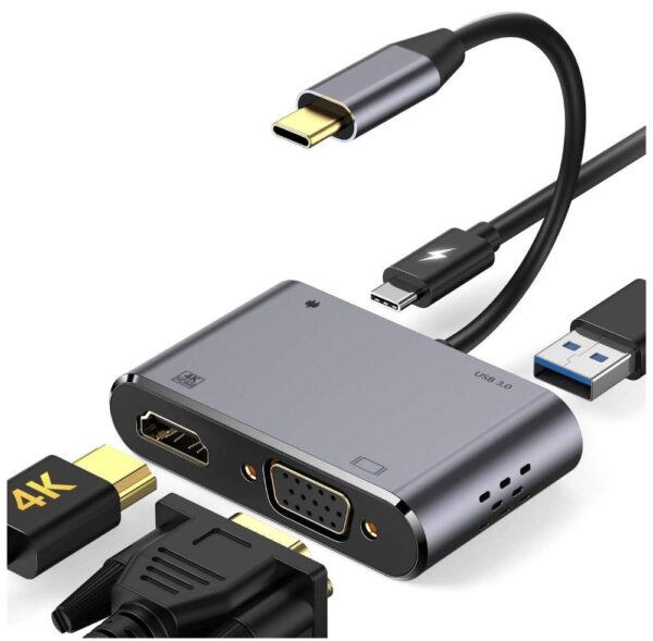 Intact 9837T – 4 in 1 USB-C Adapter HDMI +VGA + USB3.0 + USB-C (PD)