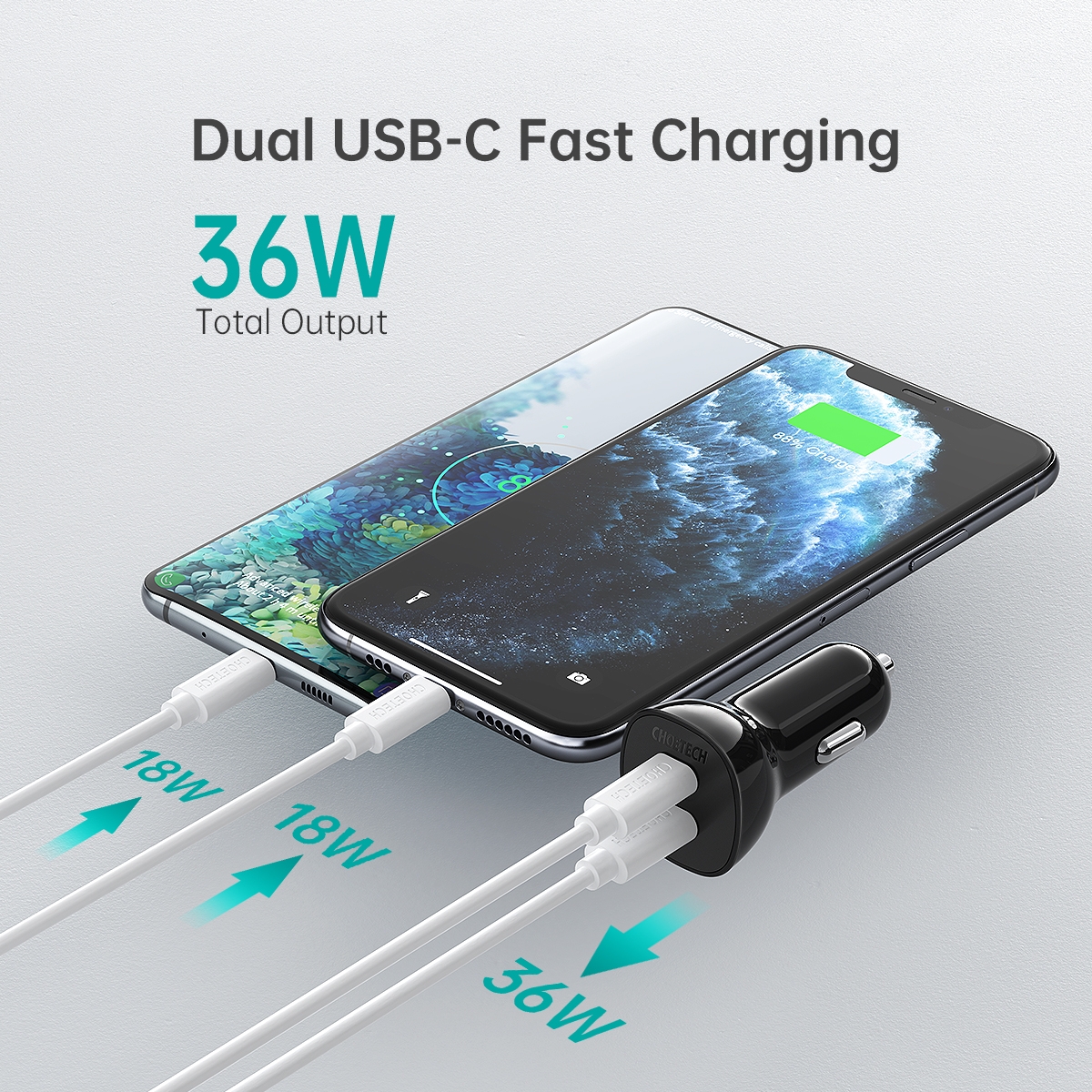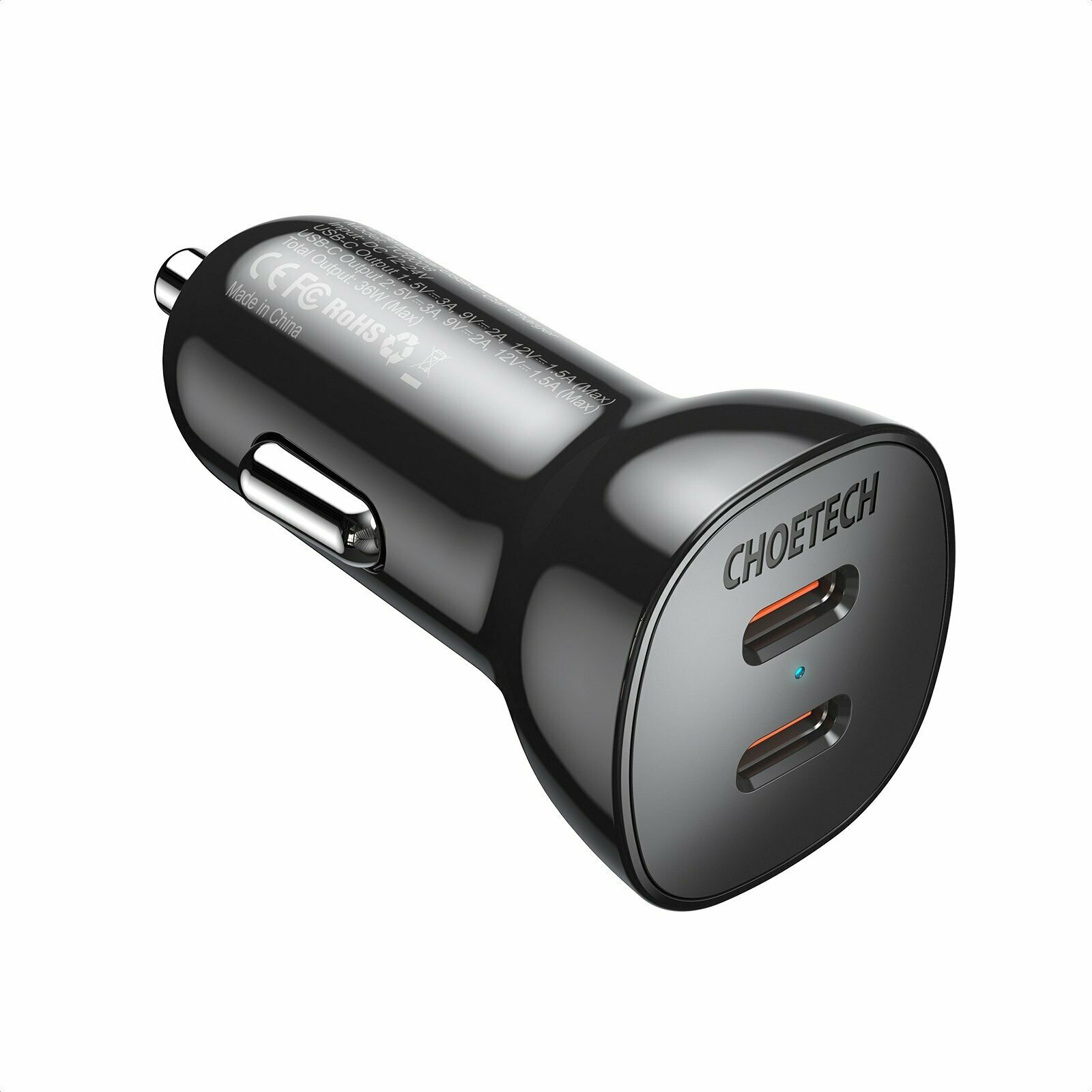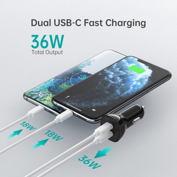 Choetech TC0008-BK Dual USB-C 36W Car Charger