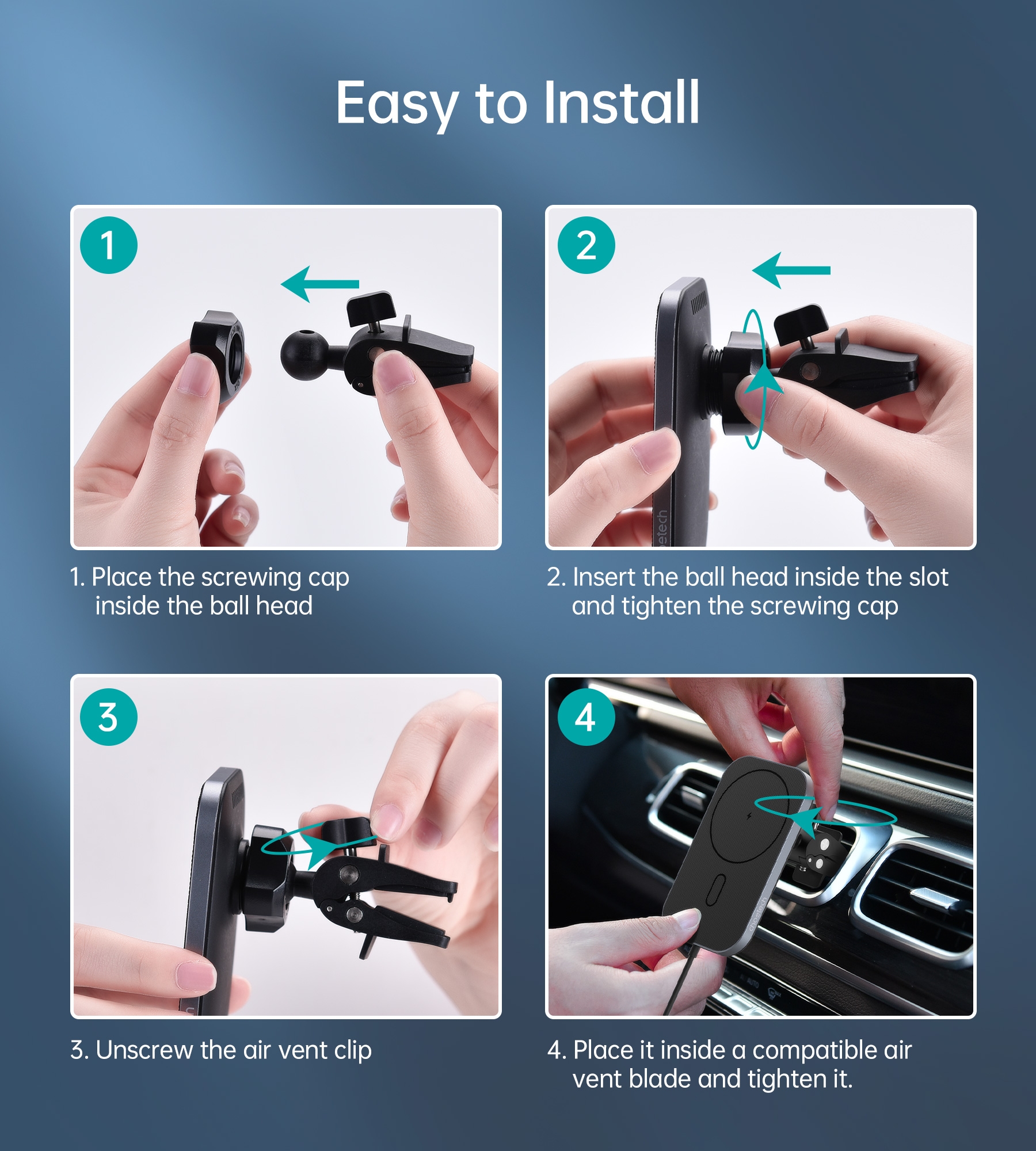 Wisdom Auto Alignment Car Air Vent Mount Wireless Charger (Qi – 15W)
