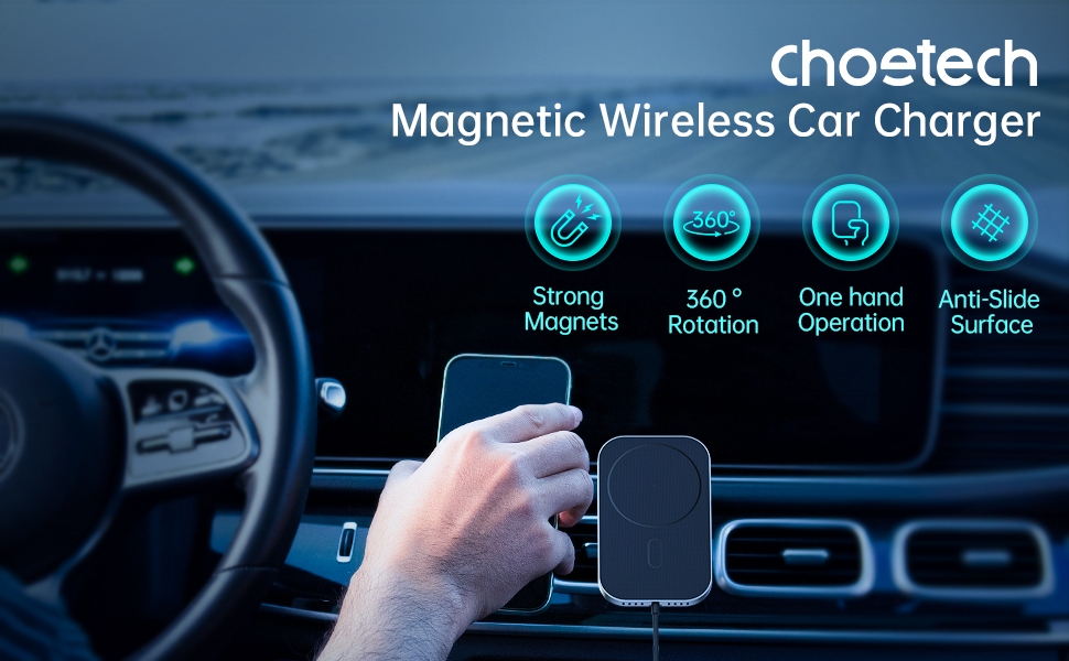 Choetech T200-F-V2 (201Bk) 15W Magleap Magnetic wireless Car charger & Holder 1M