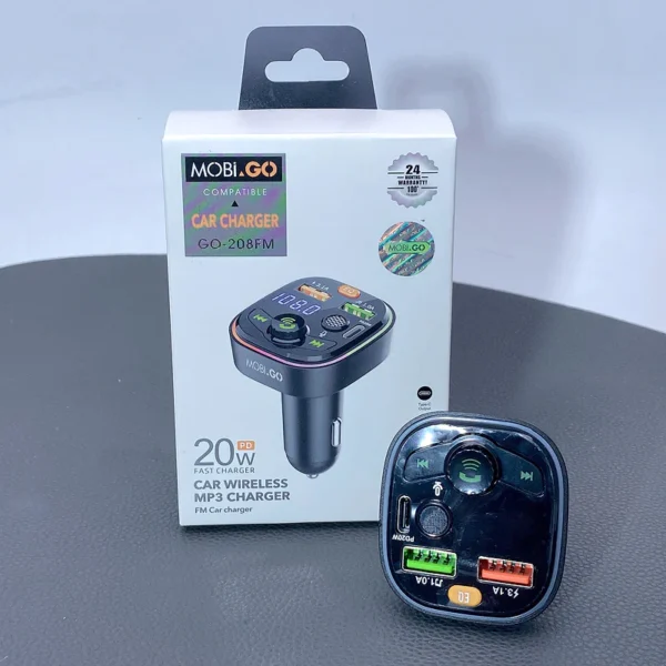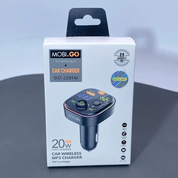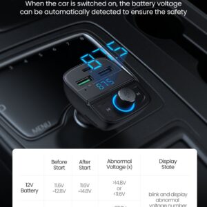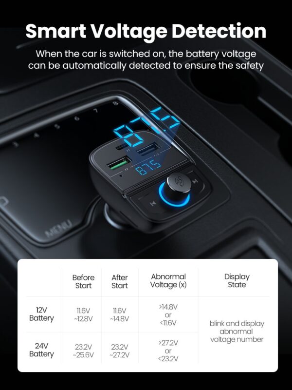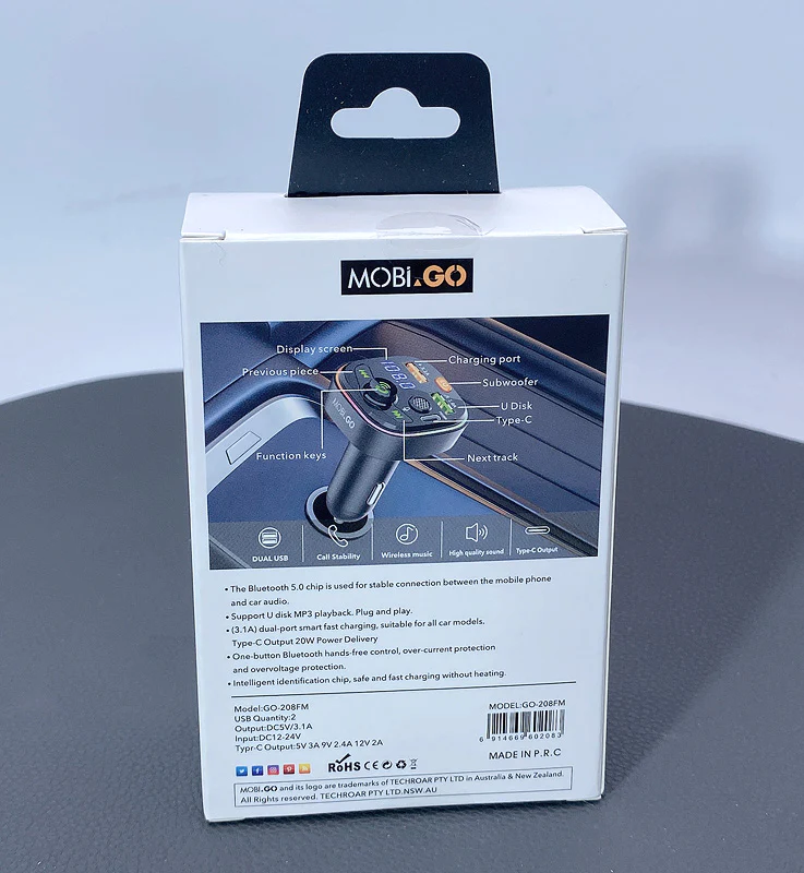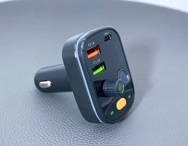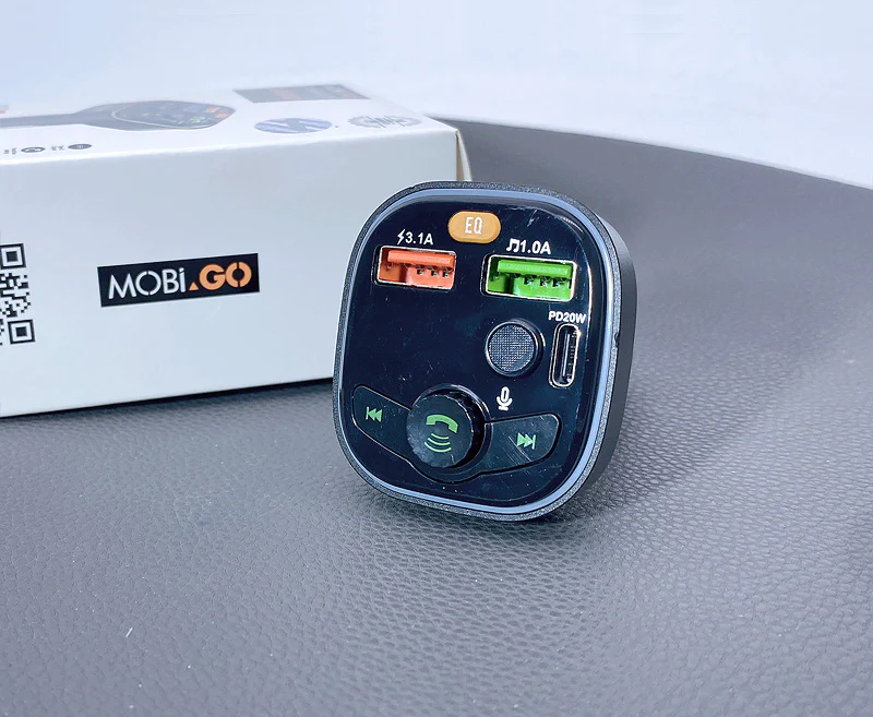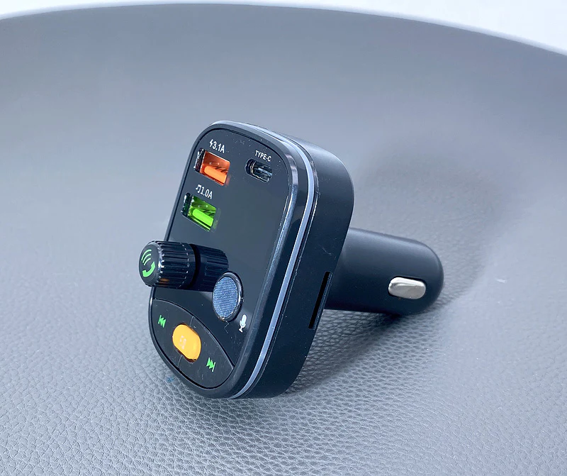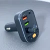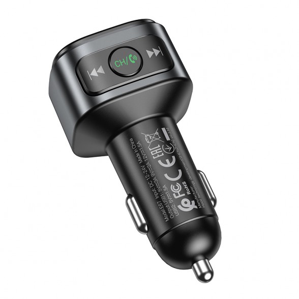 E67 Fighter, car charger with USB 18W + USB 5V / 1.5A output with wireless FM transmitter, support BT and USB flash drive playback.