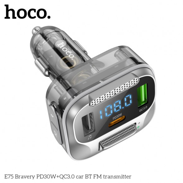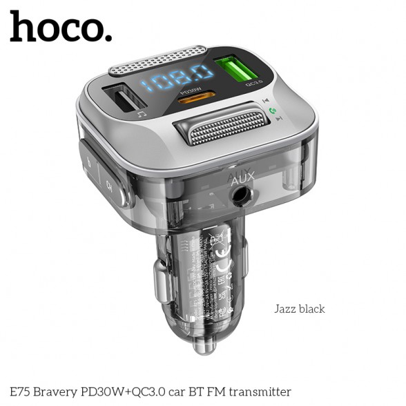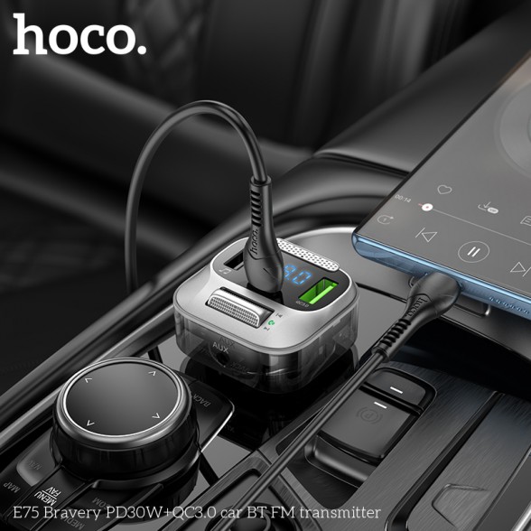 Hoco E75 PD30W QC3.0 Car Bluetooth MP3 FM Transmitter Charger – Black