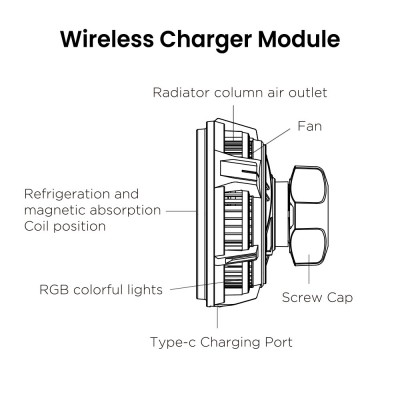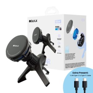 iQuick Magnetic Car Mount Charger with Cooling Semiconductor Radiator IC9 COOLGEAR 15W (IQUICK-C9)-Black (*Extra Present: 1 x 1M Type-C to Type-C Cable*)