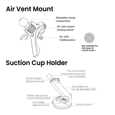 UTIA Car Mount For Dashboard & Air-vent & Windshield
