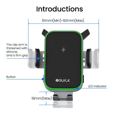 iQuick RX3 15W Wireless Charging Induction Car Holder (IQUICK-X3)-Black