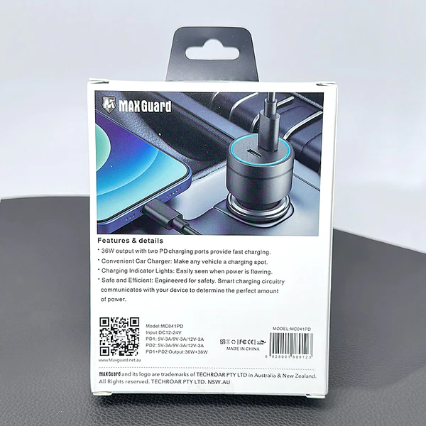 Mobigo GO210PD Dual Type-C PD 36W+36W Fast Car Charger