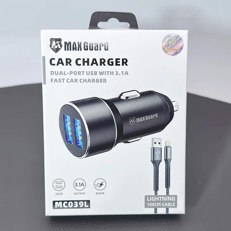 Maxguard 3.1A car charger with 1M lightning cable MC039L