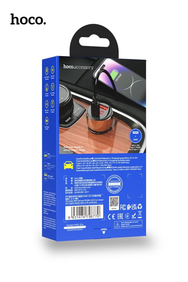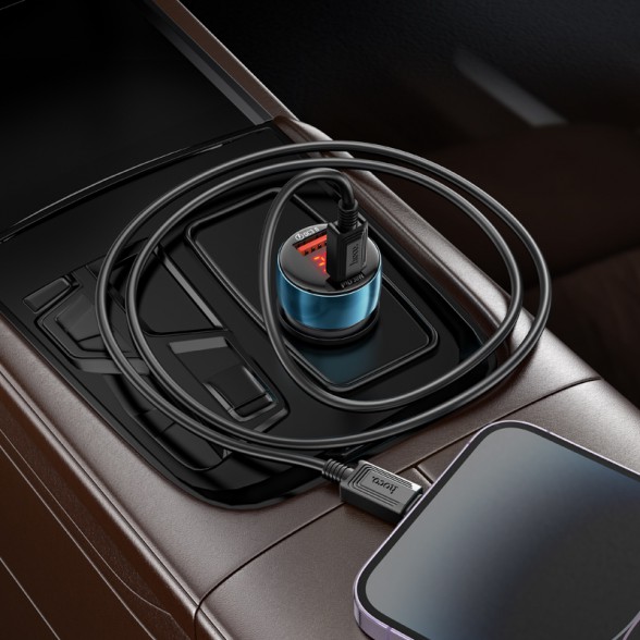 Car charger with single Type-C 30W and single USB-A 18W ports.