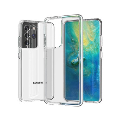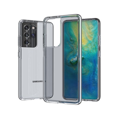 A hybrid case with a rigid back and a flexible frame.