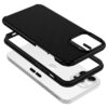 A hybrid case with a rigid back and a flexible frame.