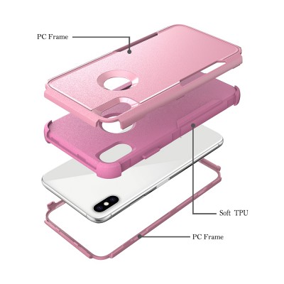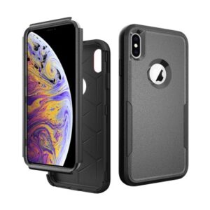 A hybrid case with a rigid back and a flexible frame.