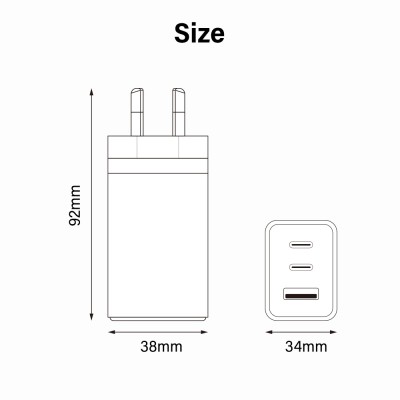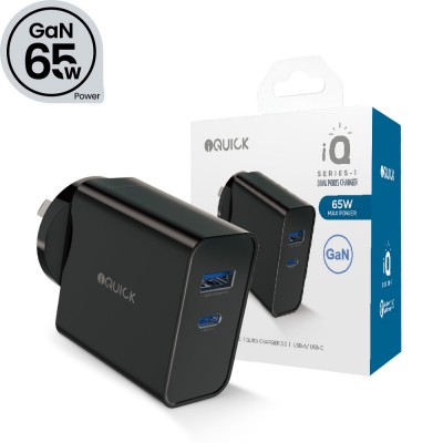 iQuick GaN 65W PD3.0 X 2 + QC3.0 Fast Charging Adapter