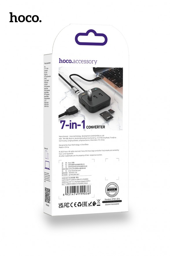 Hoco HB38 PD100W Easy link 7-in-1 Multiport Adapter HDMI SD TF 4USB