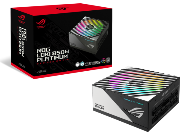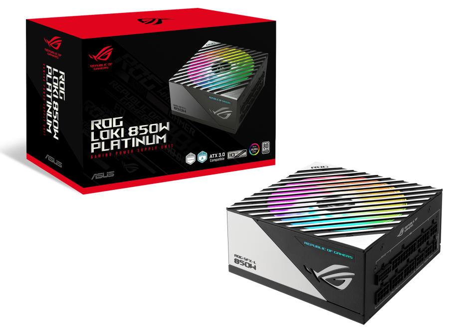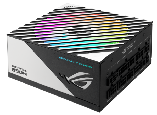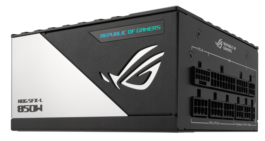 ASUS ROG LOKI SFX-L 850W Platinum Power Supply, 80PLUS Platinum, Fully Modular, 120mm PWM Fan, 2x EPS, 1x PCI-E 16 Pin, 3x PCI-E 8 Pin, 6x SATA, 4x Molex, Dual Ball Fan Bearings, ARGB-Illuminated Fan, AURA Sync, ATX 3.0 and PCI-E Gen 5.0 Ready
