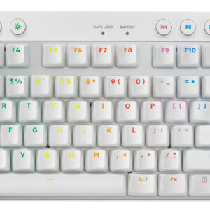 Logitech G715 RGB White Wireless Mechanical Keyboard, 80% TKL Layout, Double-shot PBT Key Caps, Under-key LIGHTSYNC RGB, Tri-mode Connectivity (2.4GHz LIGHTSPEED Wireless/BT/Detachable USB-C To USB-A Cable), Up To 25Hrs Battery Life, G HUB Software, Comfy Palm Rest