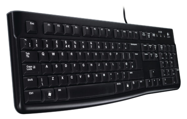 Logitech K120 Keyboard Quiet typing Spill-resistant Durable keys Thin profile Curved space bar Adjustable tilt legs, 1 Year Warranty