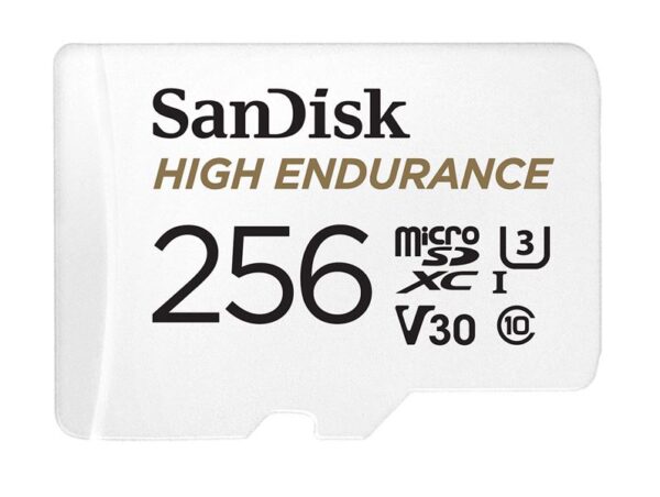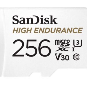 SanDisk High Endurance 256GB microSD 100MB/s 40MB/s 20K hrs 4K UHD C10 U3 V30 -40°C to 85°C Heat Freeze Shock Temperature Water X-ray Proof SD Adapter