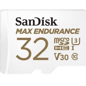 SanDisk Max Endurance 32GB microSD 100MB/s 40MB/s 20K hrs 4K UHD C10 U3 V30 -40°C to 85°C Heat Freeze Shock Temperature Water X-ray Proof SD Adapter
