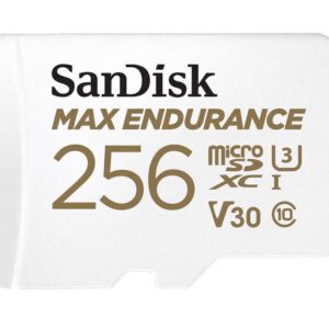 SanDisk Max Endurance 256GB microSD 100MB/s 40MB/s 20K hrs 4K UHD C10 U3 V30 -40°C to 85°C Heat Freeze Shock Temperature Water X-ray Proof SD Adapter