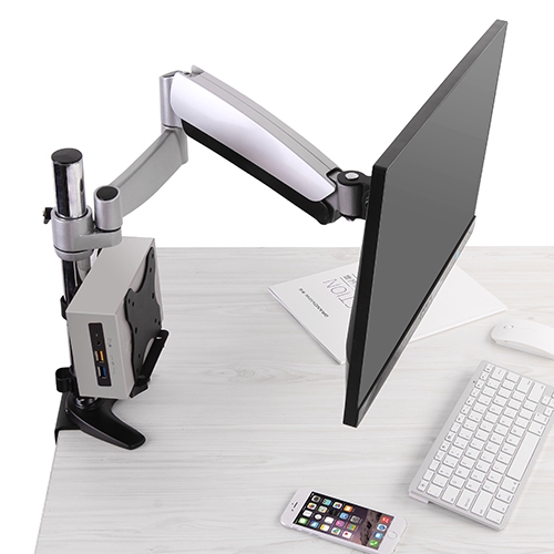 BrateckLDT82-C012UCE SINGLE SCREEN HEAVY-DUTY MECHANICAL SPRING MONITOR ARM WITH USB PORTS For most 17″~45″ Monitors, Matte Silver(New)