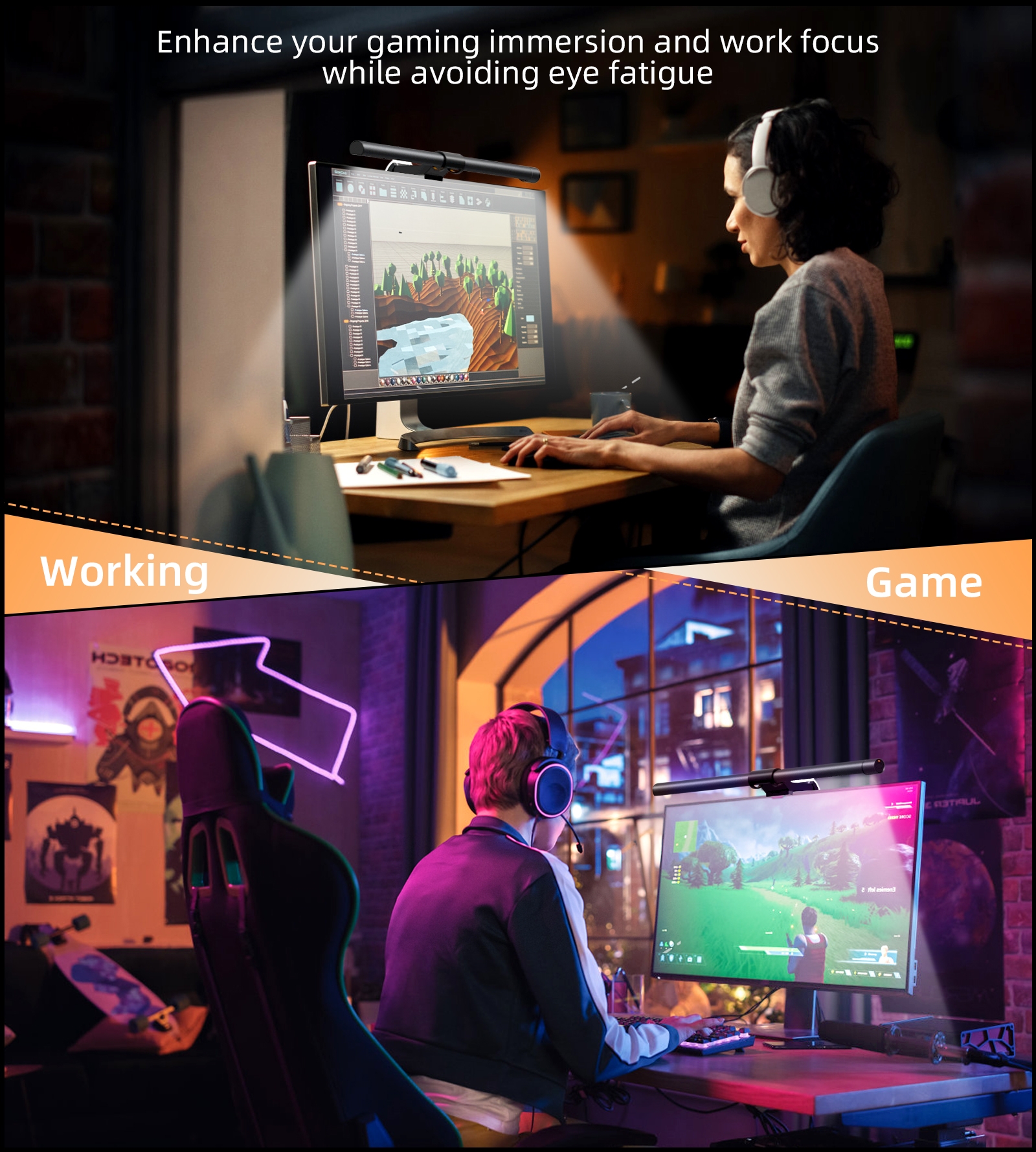 Elesense MIX-E1129 office wirelessly controlled LED lamp monitor lighting x 2 bars black