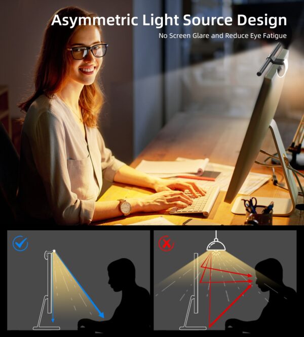 Asymmetric illumination. Light is pointed directly at the desk without any reflections on the screen.