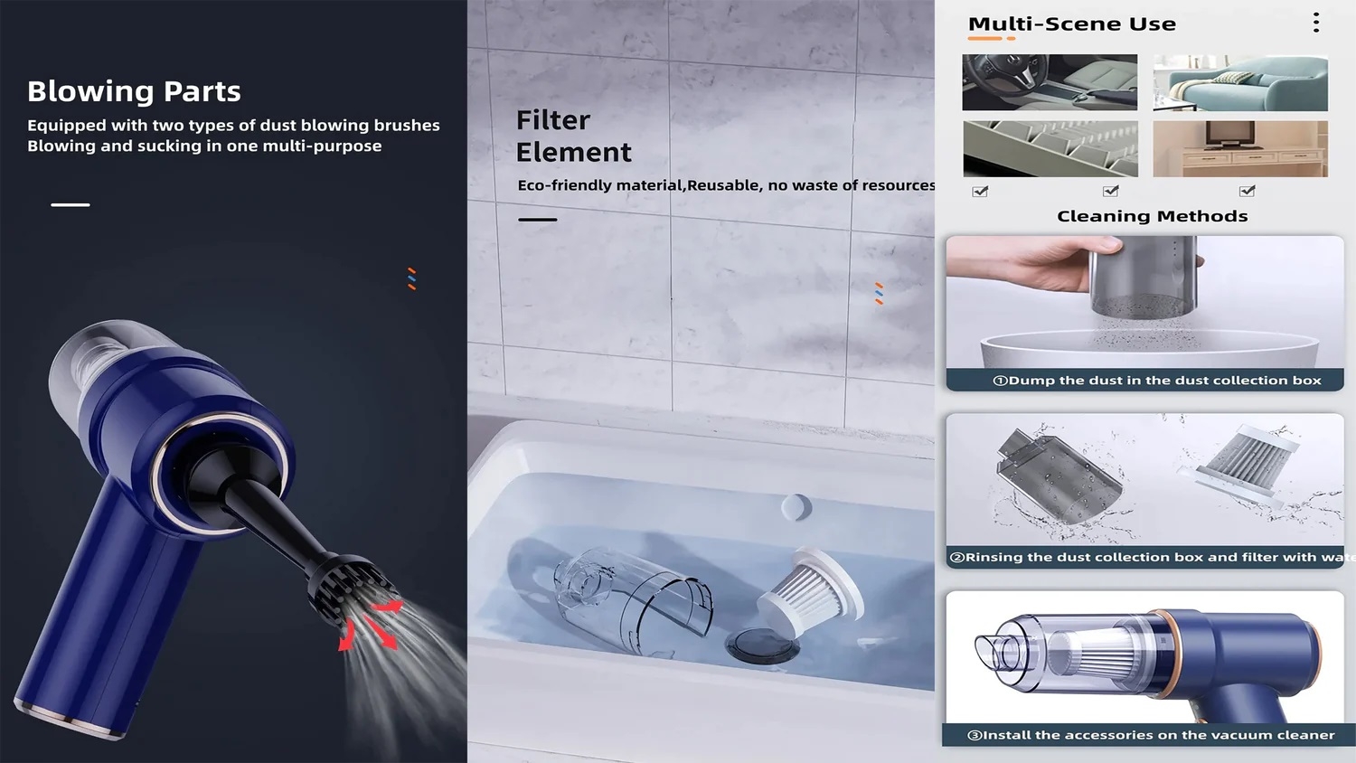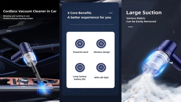 BDI-LT-117 3 in 1 Mini Car Auto Vacuum Cleaner & Air Blower Cordless Handheld