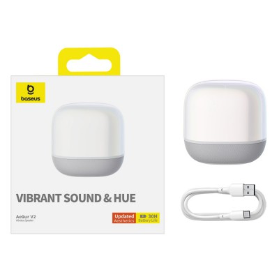 Baseus AeQur V2 Portable Wireless TWS Speaker – Bluetooth 5.0, 30 Hour Playtime, Powerful Bass and 3EQ Modes – Moon White