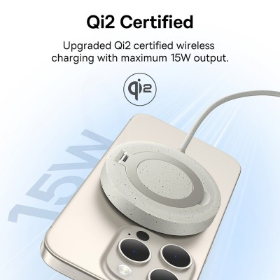 Qi2 Certified 15W Wireless Charging Qi2 certified for maximum 15W wireless output power, safer and more efficient charging experience.