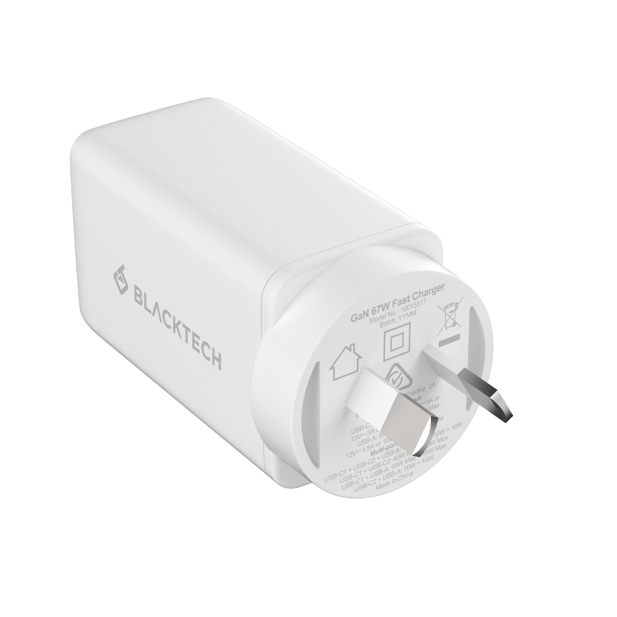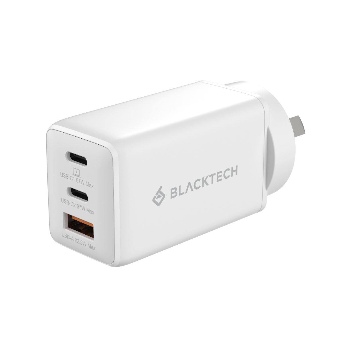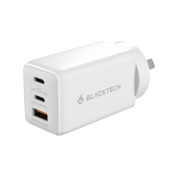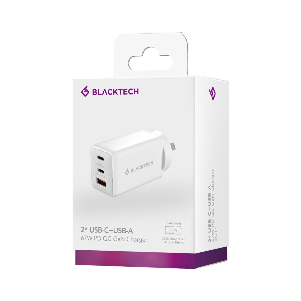 BLACKTECH BC11 2 Typa-C + 1 USB-A 67W PPS PD QC GaN Charger With Smart IC – White