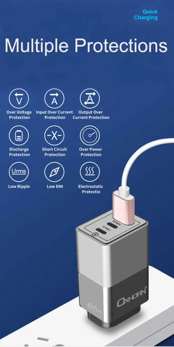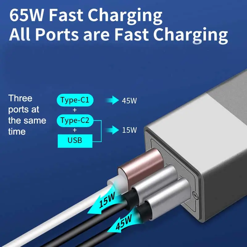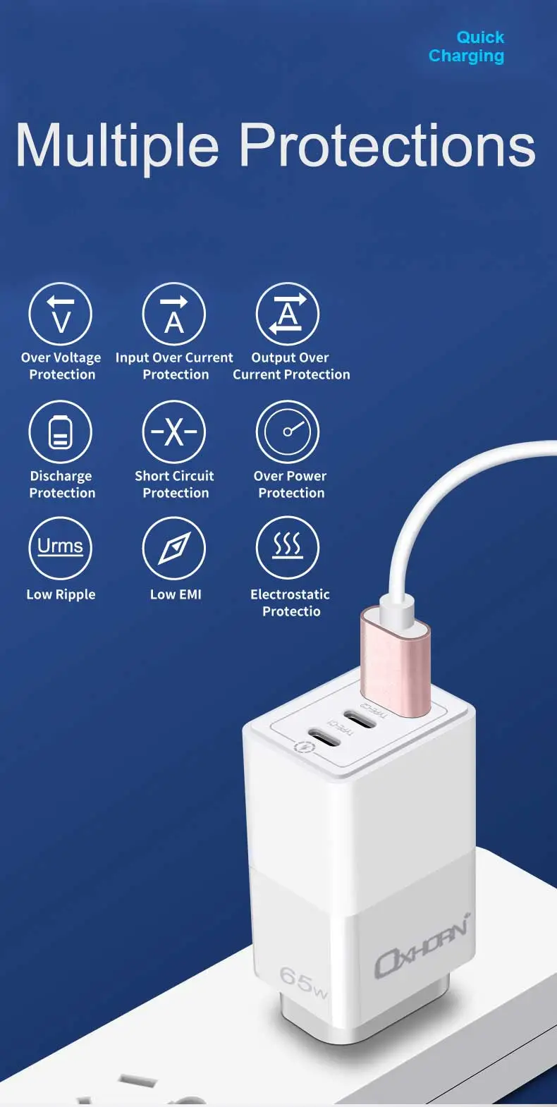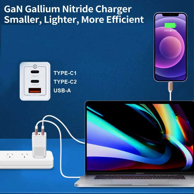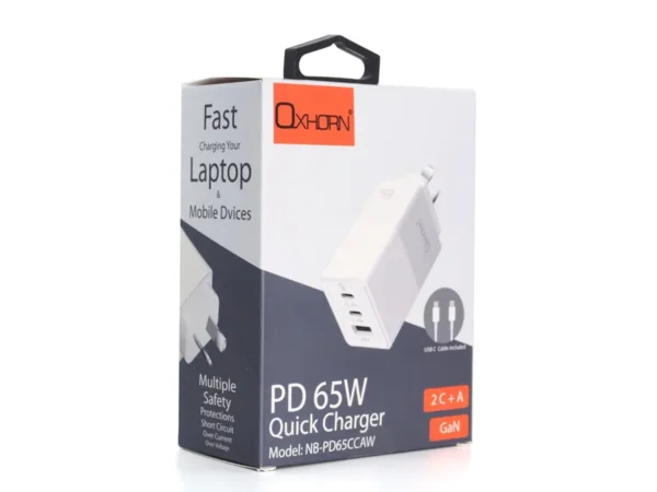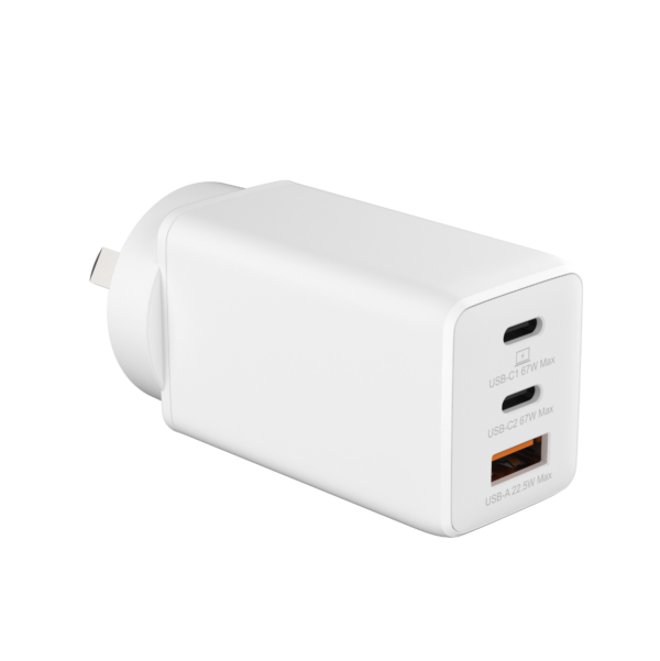 BLACKTECH BC11 2 Typa-C + 1 USB-A 67W PPS PD QC GaN Charger With Smart IC – White