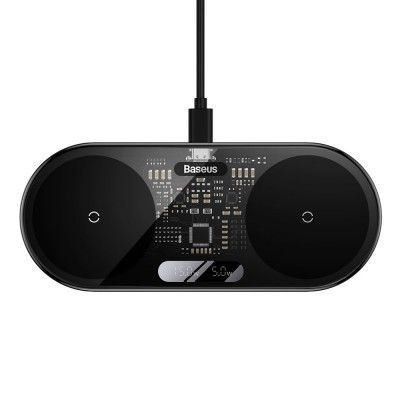 Baseus Digital LED Display Dual Wireless Charger With Digital Display 20W (WXSX010101)-Black