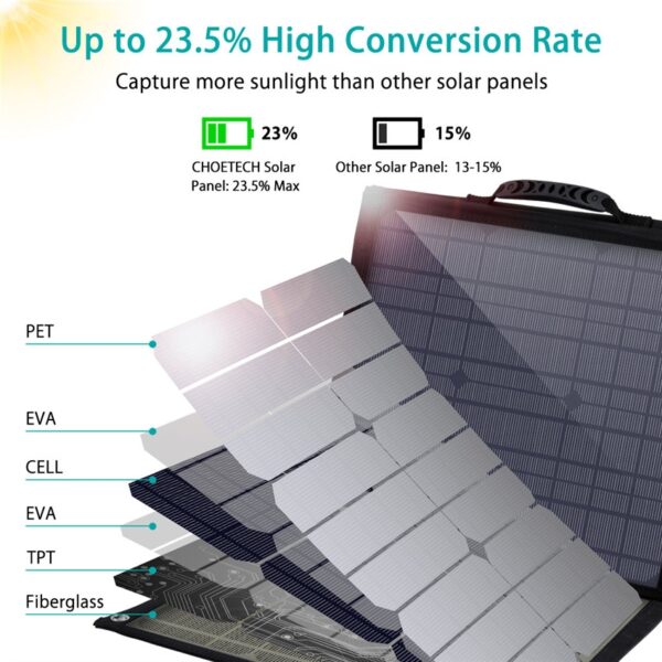 Choetech SC007 Solar Panel Portable Charger 80W 18V USB C Solar Panels Charger with USB C PD 30W