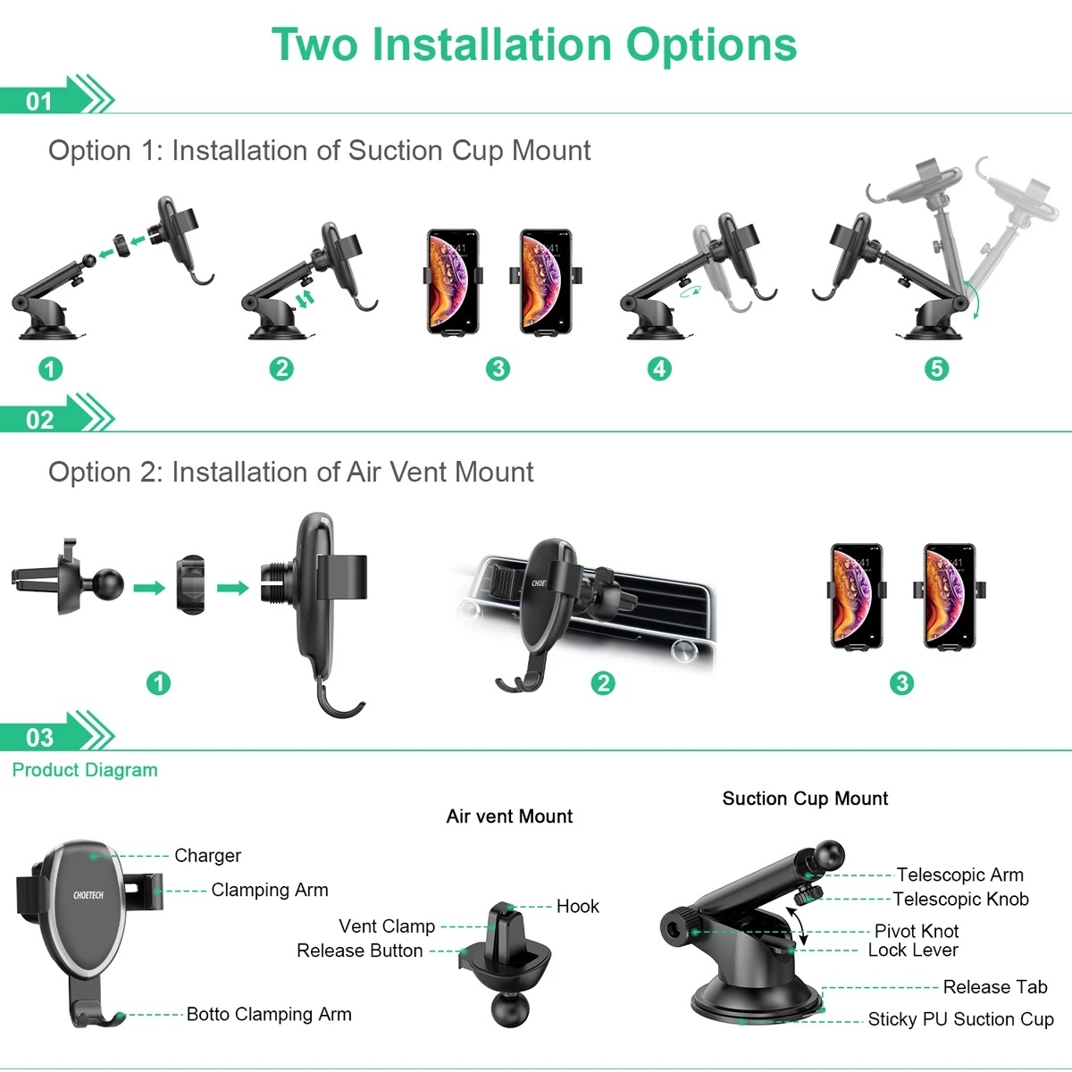 Choetech T524-SAU Wireless Charger+ AC Adapter (AU) Black