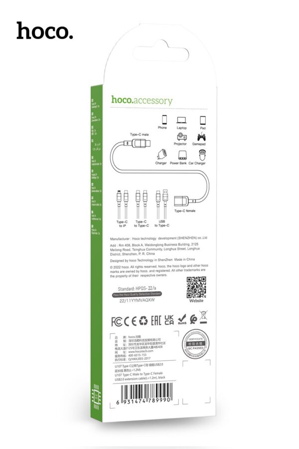 Hoco X89 USB-C to USB-C Braided Super Tough Cable 100cm – Black