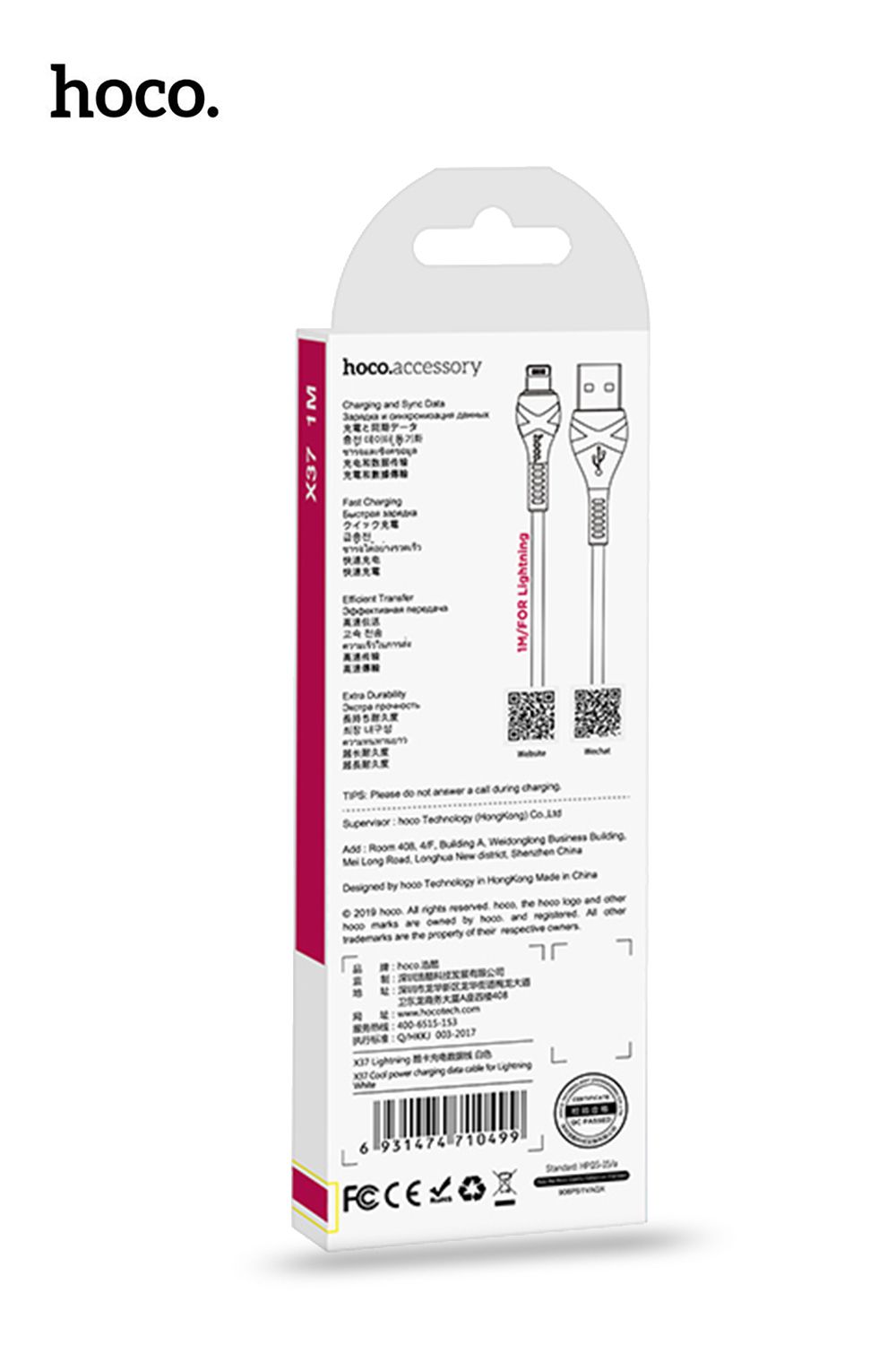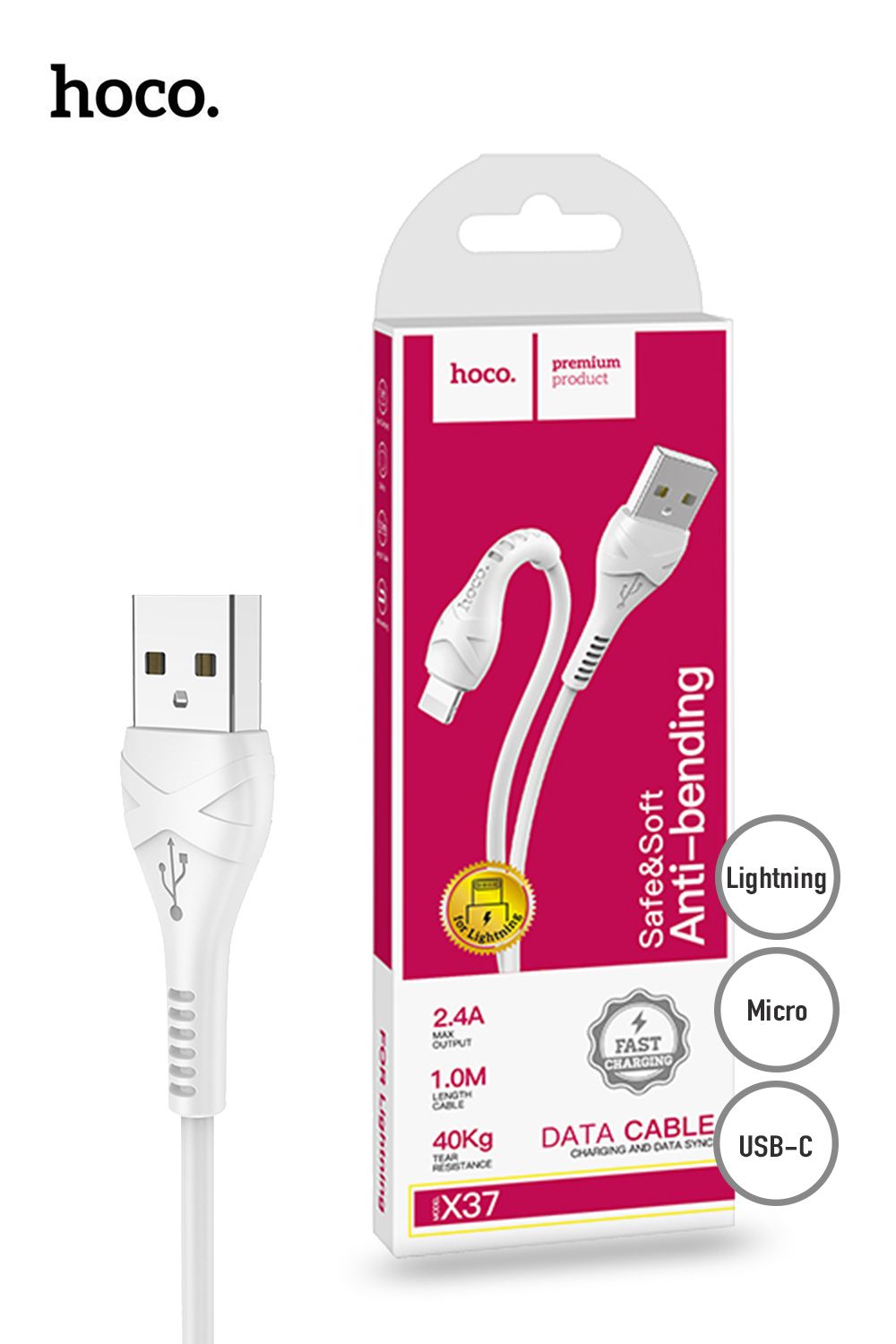 X37 Cool power USB to Lightning charging data sync cable 1m PVC casing anti-tangle PVC braid.