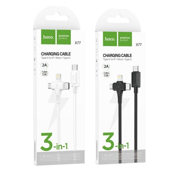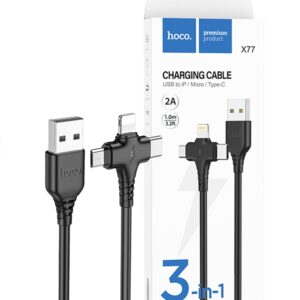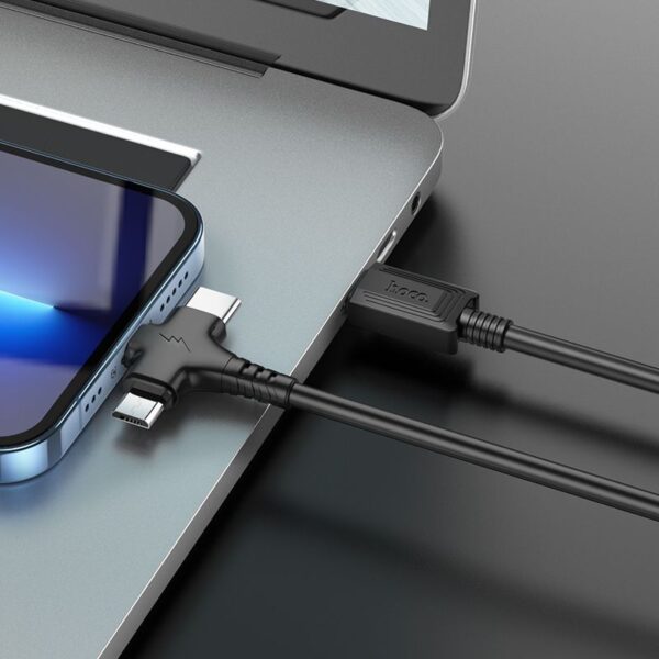 Hoco X77 3in1 USB-A to Lightning USB-C Micro-USB Charging Cable 6931474784261 – Black