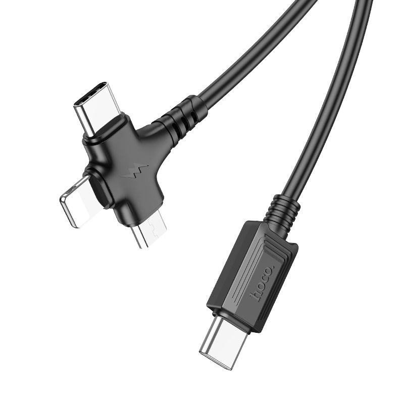 Hoco X77 3in1 USB-C to Lightning USB-C Micro-USB Charging Cable 6931474784285 – Black