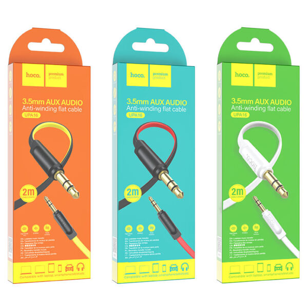UPA16 AUX audio cable, TPE jacket, pure copper gold-plated plug 3.5mm, 1m / 2m.