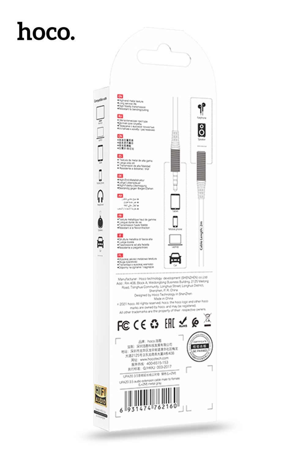 Hoco UPA23 Aluminum AUX Cable 1M – Black