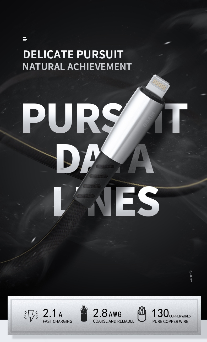 KIVEE CB103 8 Pin connector fast Charging cable 1M Black/Silver