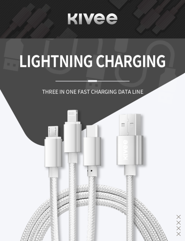 KIVEE CH061 USB to 3 IN 1 Charging Cable 1.2M Silver quantity