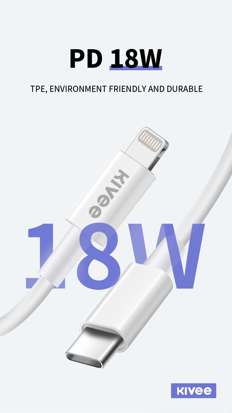 KIVEE CT206 USB-C Male to Lightning Male DP 18W Fast Charging cable 1M quantity