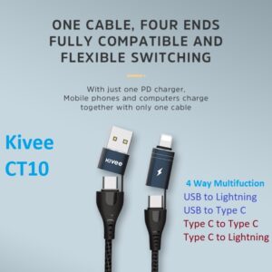 Kivee CT10 4 way Multi-function 5A Fast Charging Cable for Lightning/USB/USB-C – 1M Black quantity