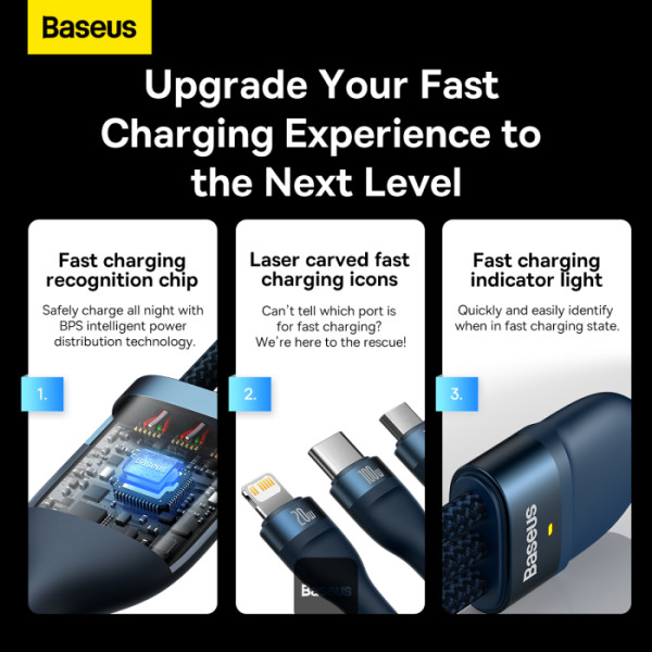 Baseus StarSpeed 1-for-3 Fast Charging Data Cable USB to M+L+C 3.5A 1.2m