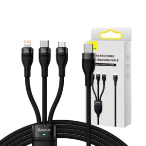 Baseus Flash Series 2 One Drag Three Quick Charging Wire Type-C to M+L+C 100W 1.5M-Black Compatible for iPhone 15 Series