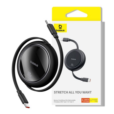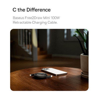 Baseus Free2Draw Mini Retractable Charging Cable Type-C to Type-C 100W 1m Compatible for iPhone 15 Series BLACK